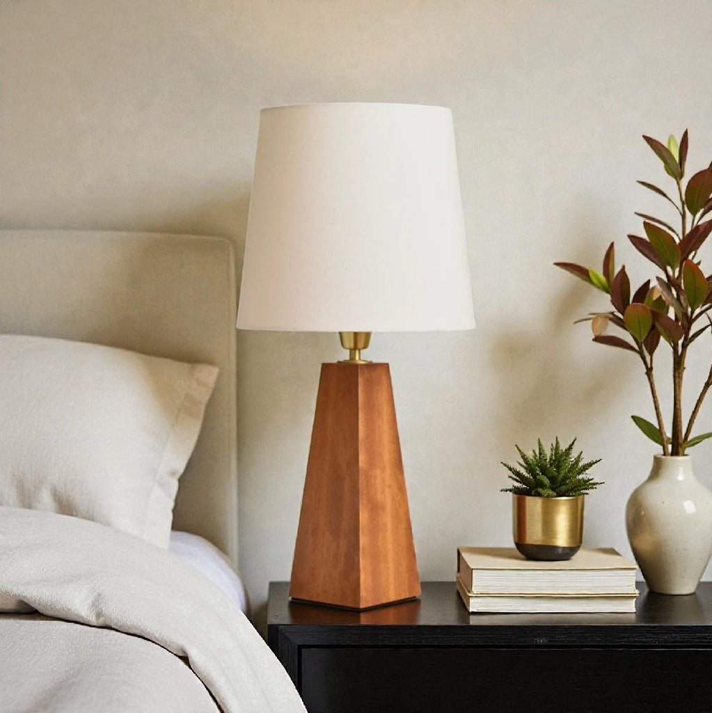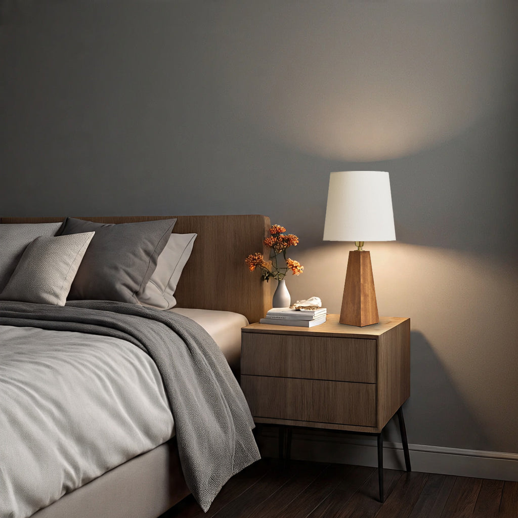 Descubre la lámpara de mesa de noche Huari, una pieza que combina la calidez natural de la madera con sofisticados acabados de bronce, creando un equilibrio perfecto entre funcionalidad y estética contemporánea. La lámpara Huari destaca por su diseño moderno que se integra perfectamente en espacios contemporáneos, minimalistas o eclécticos. Sus líneas elegantes y la combinación de madera natural con acabados de bronce aportan calidez y distinción a cualquier dormitorio