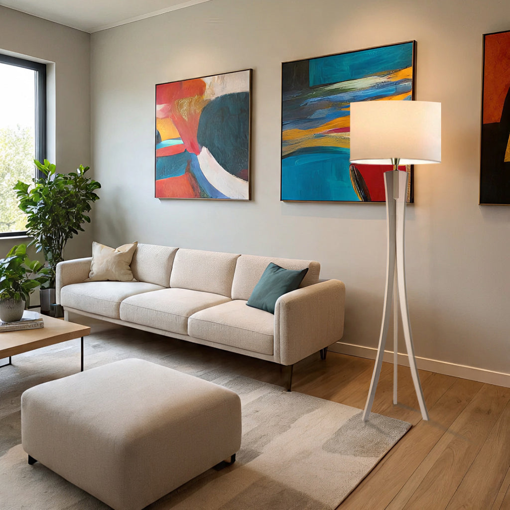 La lámpara de pie Safo aporta un toque de sofisticación y elegancia a cualquier espacio. Con un diseño nórdico encantador, esta lámpara ofrece una base de madera robusta, que no solo destaca por su estética, sino también por su durabilidad. El trípode proporciona estabilidad y un estilo distintivo, convirtiéndola en una pieza central ideal para vivir, trabajar o relajarse.