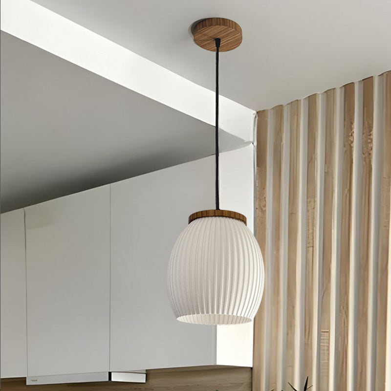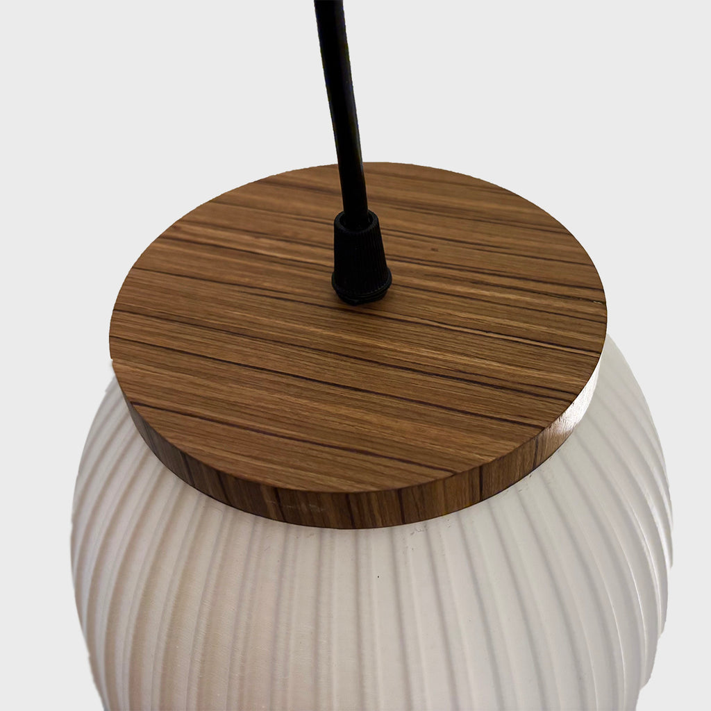 Lámpara decorativa de Techo con pantalla impresa en 3D y longitud del cable regulablepara adaptarse a la altura deseada. Es una lámpara de diseño exclusivo de EVA LAWRENCE ATELIER que transformará tu espacio en un ambiente único y personalizado.