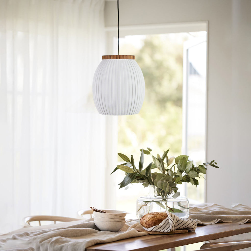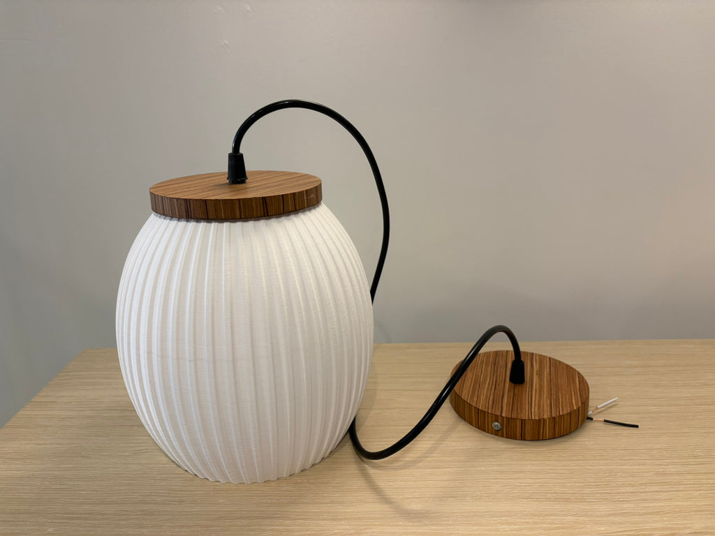 Lámpara decorativa de Techo con pantalla impresa en 3D y longitud del cable regulables para adaptarse a la altura deseada. Es una lámpara de diseño exclusivo de EVA LAWRENCE ATELIER que transformará tu espacio en un ambiente único y personalizado.